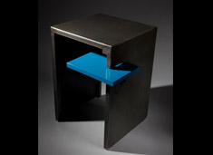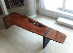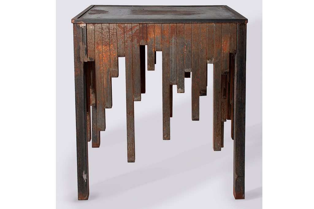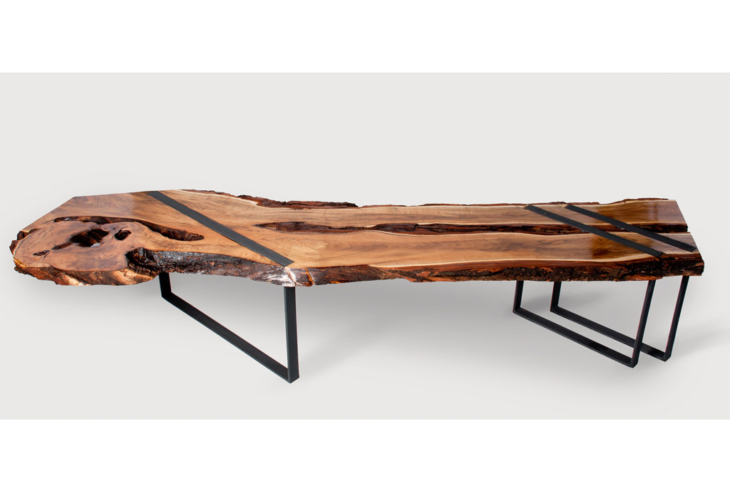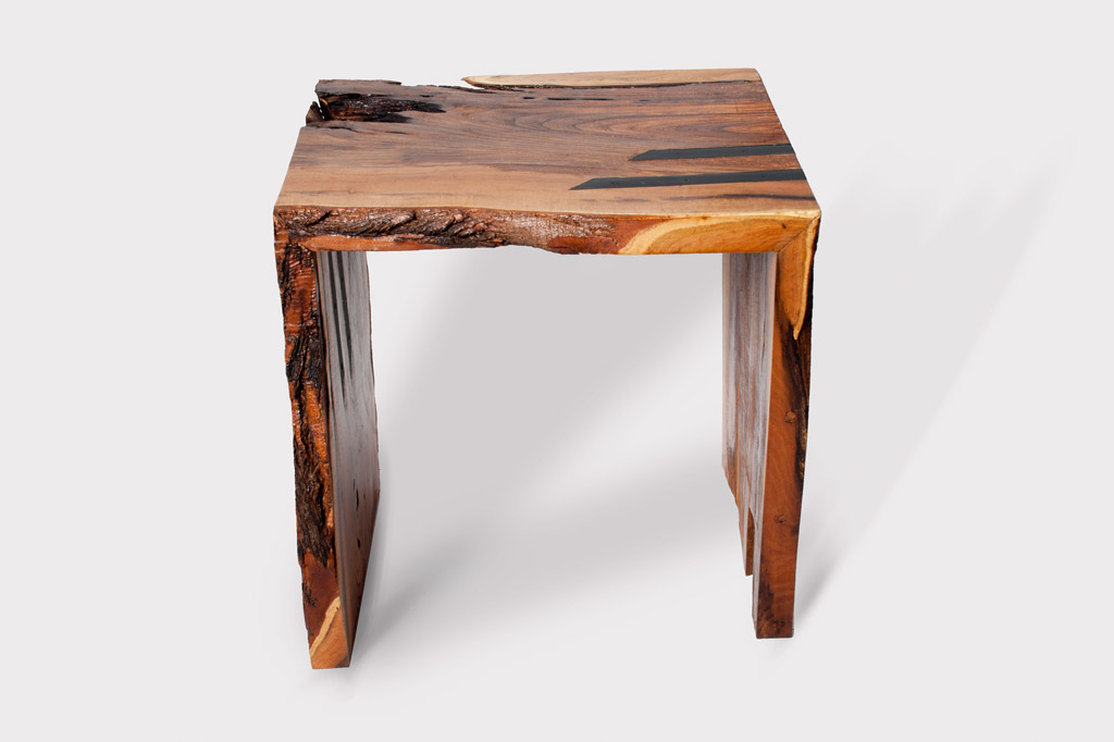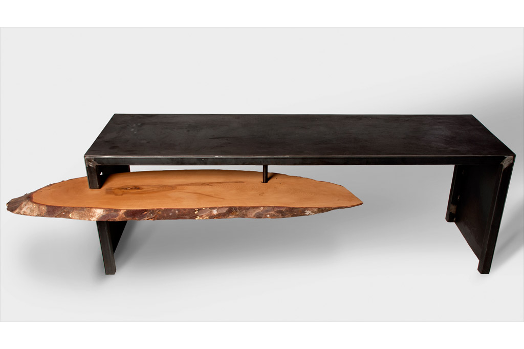 Canadian-born designer Jordan Mills works in the Maipo River Valley, Chile. He designs primarily in storm-fallen native woods and cold-rolled steel, promoting sustainable techniques in fabrication and material selection. His work carries a sense of rustic minimalism, with the intervention of steel on natural forms.